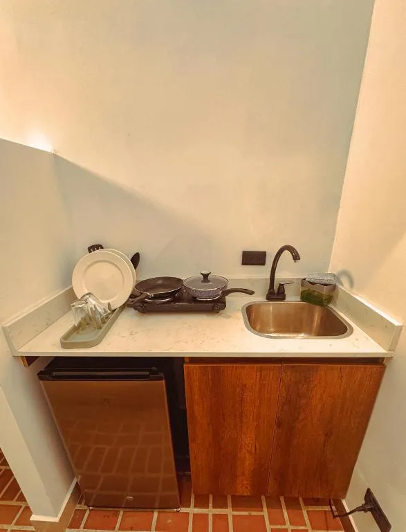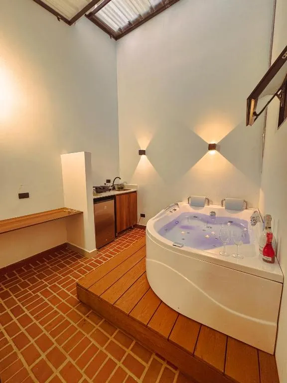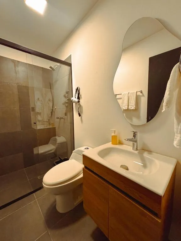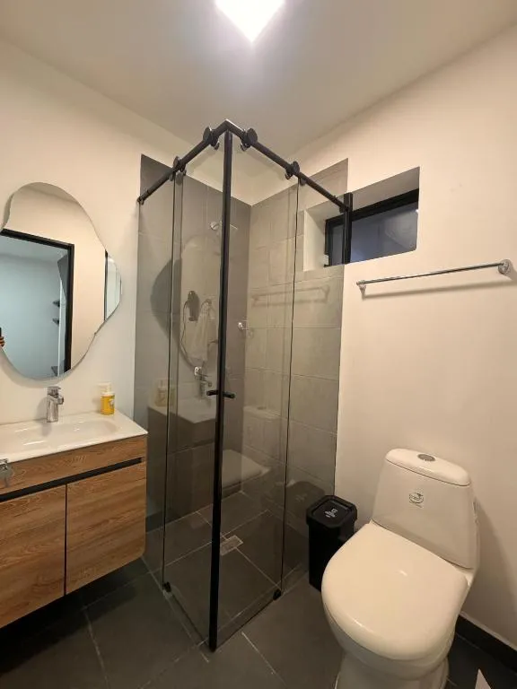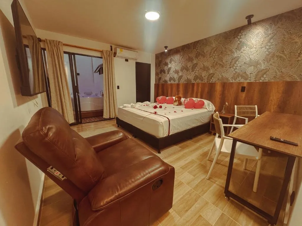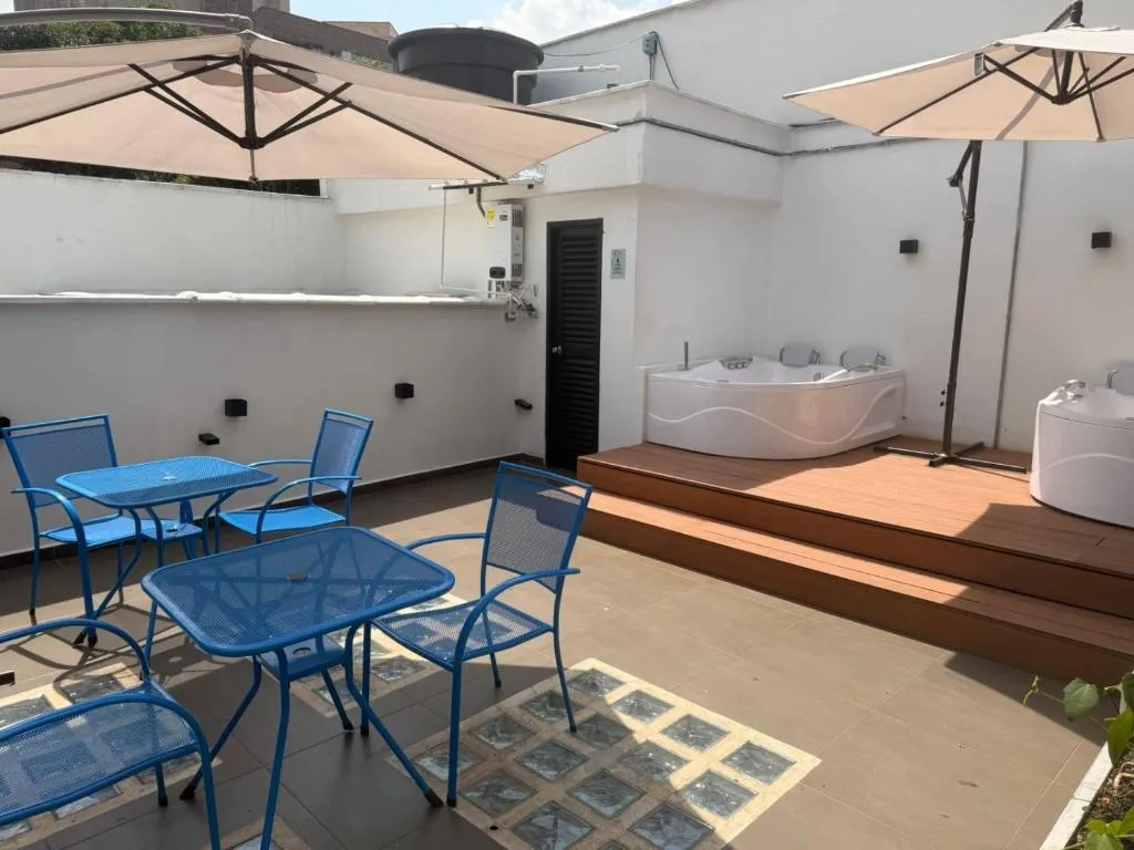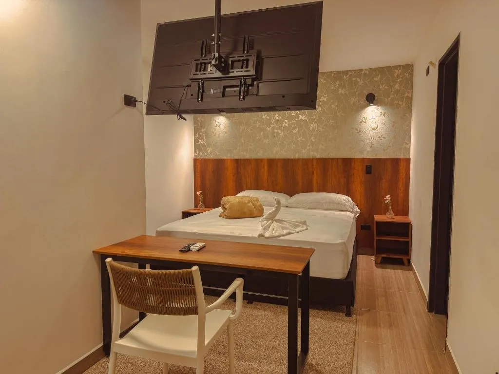 Das Apartaestudios Zeni in Medellín bietet praktische Zimmer mit Service auf Anfrage sowie familienfreundliche Unterkünfte und eine Terrasse zur Entspannung. Ein kontinentales Frühstück steht täglich bereit, während die 24-Stunden-Rezeption für Flexibilität sorgt. In der Nähe liegen drei bedeutende Parks: Der Barefoots Park ist in nur 3 Minuten Fahrt (ca. 3 km) erreichbar, ebenso wie das nahegelegene Stadion, das ebenfalls nach 2 Minuten Autofahrt liegt. Noch schneller erreicht man den Mangos Park, er befindet sich bereits nach einer Minute Fahrt (1 km entfernt). Für Naturliebhaber lohnt ein Besuch des Nutibaras Hügels, der etwa 4 Minuten mit dem Auto (3 km) entfernt ist. Zudem lässt sich das lebhafte Viertel Eine Menge bequem zu Fuß erkunden, da es nur rund zwei Gehminuten (210 Meter) vom Studio entfernt liegt.